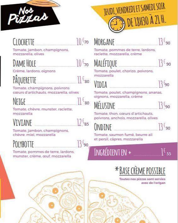 Chez nous, chaque plat raconte une histoire de passion, de partage et de gourmandise. Nous cultivons l’amour du fait maison à travers une cuisine artisanale, locale et pleine de charme, préparée avec des ingrédients soigneusement sélectionnés. La pizza à emporter est également disponible dans le rayon de Hadol, Xertigny et La Vôge-les-Bains.